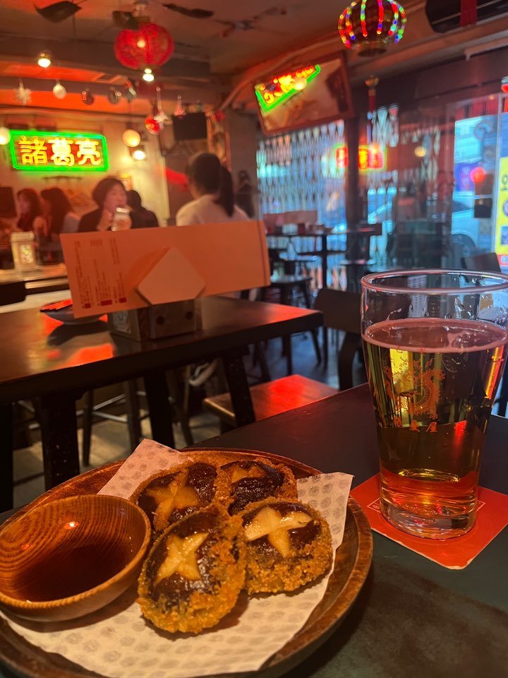 저희는 메뉴 3가지를 주문했어요. 표고 슈마이는 다들 주문하시길래 시켜봤는데 이유가 있었군요! 표고 속이 꽉 차있고 쫀득 바삭한 표고가 짭잘하게 간이 되어 있어서 맥주 안주로 너무 찰떡이더라고요. 4개에 15,000원은 조금 비싸지 않나 하는 생각이 들긴 하는데 맛있어서 꼭 시키라고 하고 싶네요.