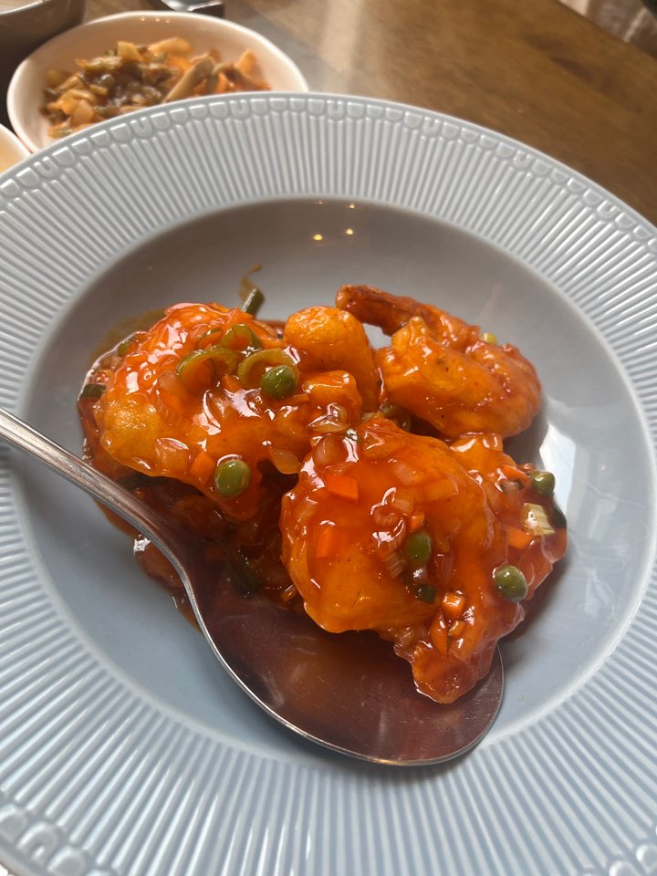 깐풍기와 칠리새우도 역시 자극적이지 않은 매콤 달콤한 맛입니다. 소스가 정말 맛있고 재료가 실해서 좋았어요. 이렇게 깔끔하고 부담스럽지 않은 중식은 처음인 것 같아요.