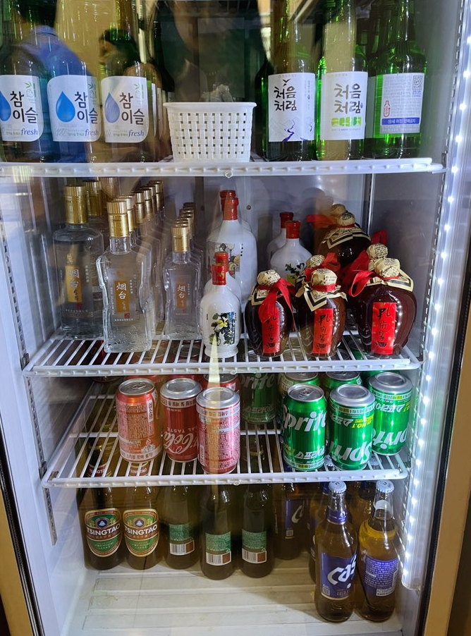 주류 메뉴판입니다. 이연 고량주는 38도(45,000원)와 56도(180,000원) 두 가지가 있어요. 그 외의 고량주로는 천진고량주, 연태고량주, 공부가주, 죽엽청주가 있습니다. 맥주는 청도(칭따오)맥주와 국산 맥주 카스가 있네요. 소주(참이슬, 처음처럼)도 있습니다.