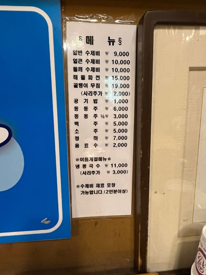 해물파전은 바삭했는데 해물이 많이 들지는 않았더라고요. 계란 부침맛이 많이 나는 편이었습니다. 다음에는 꼭 대표메뉴인 수제비를 먹어보고 싶네요.