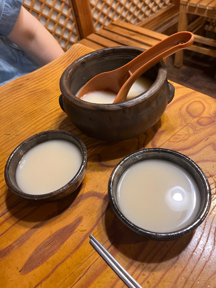여기서 판매하는 동동주는 단맛이 많지 않고 약간의 산미가 있는 깔끔한 맛의 동동주였어요. 살짝 슴슴하다는 느낌도 들었지만 기름진 해물파전과 꽤 잘 어울렸습니다.