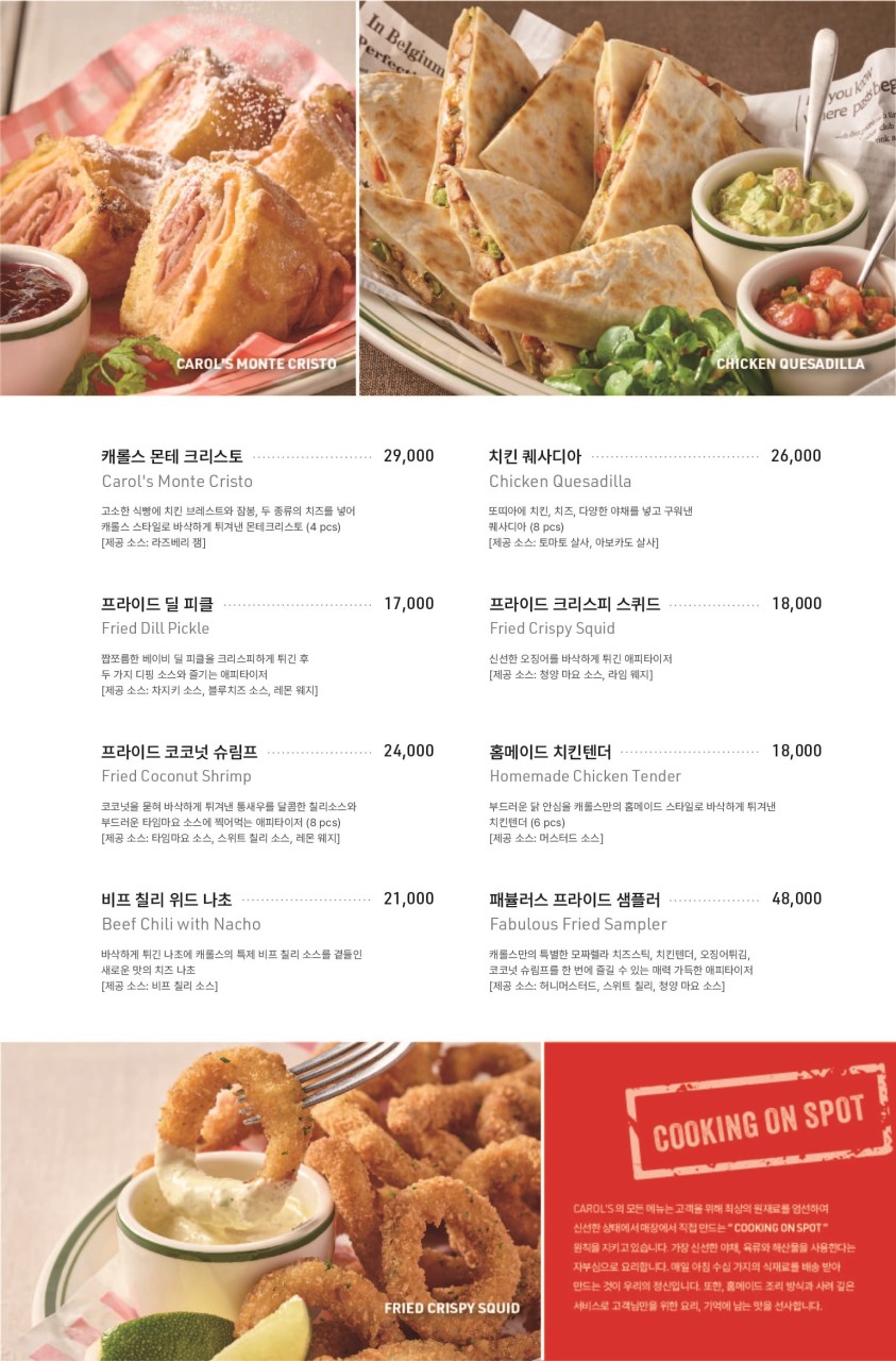 1990~2000년대 성황 했던 베니건스, 마르쉐, 토니로마스와 같은 감성의 레트로한 아메리칸 패밀리 레스토랑인 캐롤스! 추억에 잠기어 가족들과 함께 맛있는 식사하기 좋은 장소였습니다. 음식 퀄리티도 좋았고 많은 메뉴를 시켰음에도 음식이 빠르게 나와서 불편함 없이 식사할 수 있었던 곳입니다. 가족들 친구들 연인과 함께 연말에 방문해 보시는 것은 어떨까요?