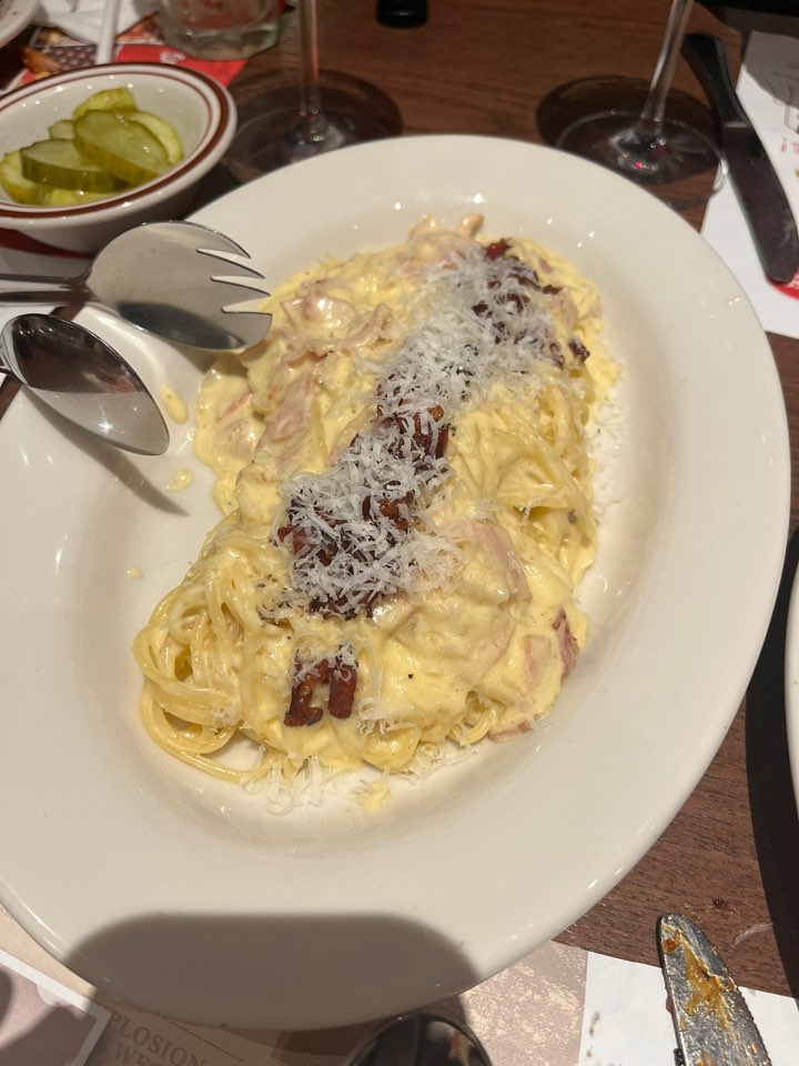 아이들을 위한 키즈메뉴가 있어요. 볶음밥, 함박스테이크, 감자튀김, 과일꼬치, 젤리, 오렌지 주스, 한입 과자가 아이 식판에 담겨 나오는데요. 구성이 꽤나 알차고 괜찮네요. 크림 스파게티가 아주 꾸덕하고 베이컨도 넉넉히 들어있어서 정말 맛있었습니다. 대가족 연말 모임 장소로 아주 좋았네요!