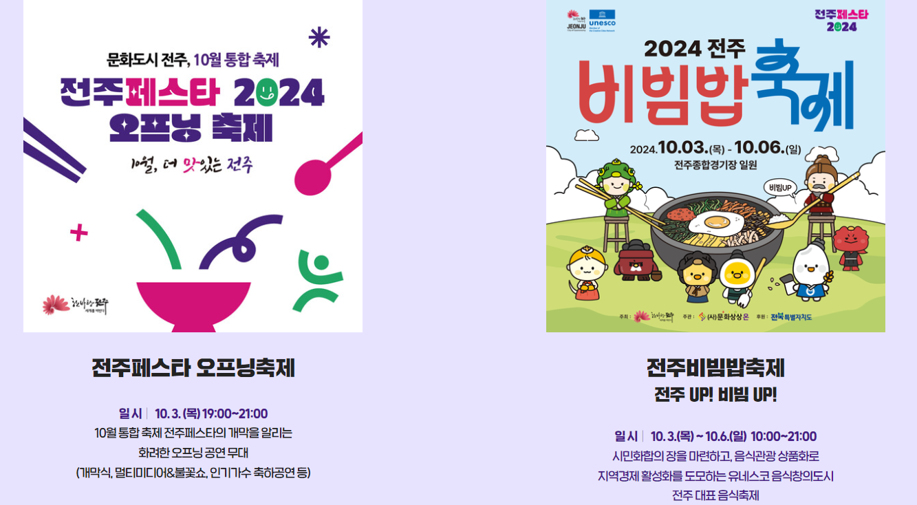 [전주 페스타 2024] 10월 통합 축제 ; 10월3일~6일 프로그램 집중 정리