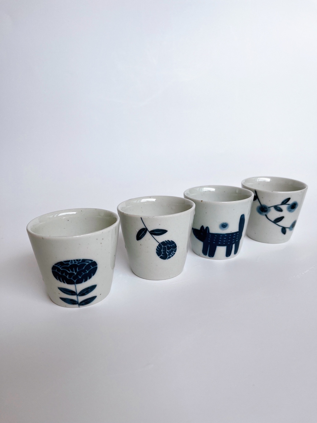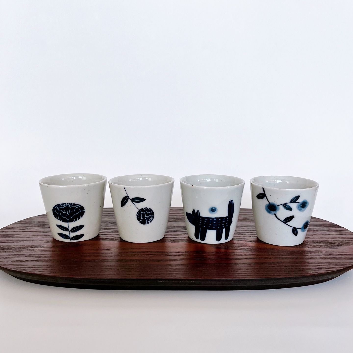 여기담기의 '' 글자가 쓰여진 탁주잔은