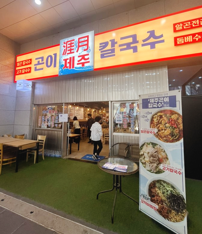 제주 곤이 칼국수는 문정역 엠스테이트 빌딩 지하 1층에 있는데 건물 내부에서 찾으려니 찾기 힘들더라고요. 전화를 걸었더니 사장님께서 너무 친절하게도 데리러 와주셨어요. 내부는 넓고 쾌적했습니다.