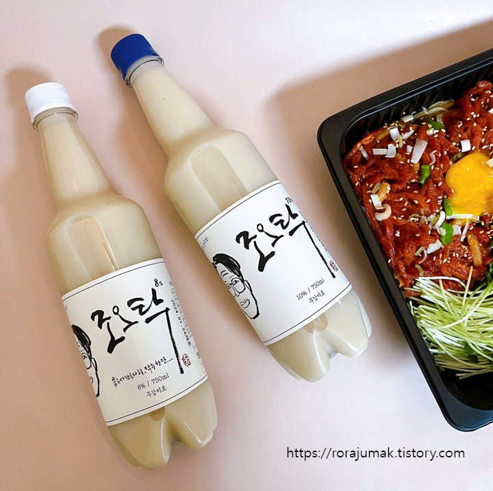 주모 로라입니다. 얼마 전에 상주 다담도가에서 맛있는 막걸리 두 병을 보내주셨어요. 맛없으면 리뷰하지 않는 저인데 이 술은 자신 있게 소개해 드립니다. 오늘 보여드릴 술은 조오탁 8도와 10도입니다.