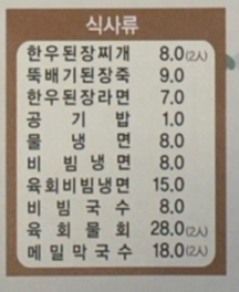 | 육회비빔냉면 | 15000원 | |