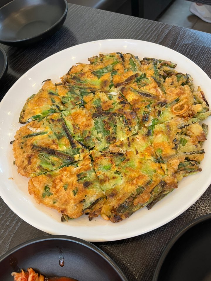 해물파전은 계란이 넉넉히 들어가 고소하면서 재료가 풍부해 두툼했어요. 오징어도 많이 들어있어서 가성비 좋다고 생각했습니다. 막걸리와 함께 정말 맛있게 먹었네요!