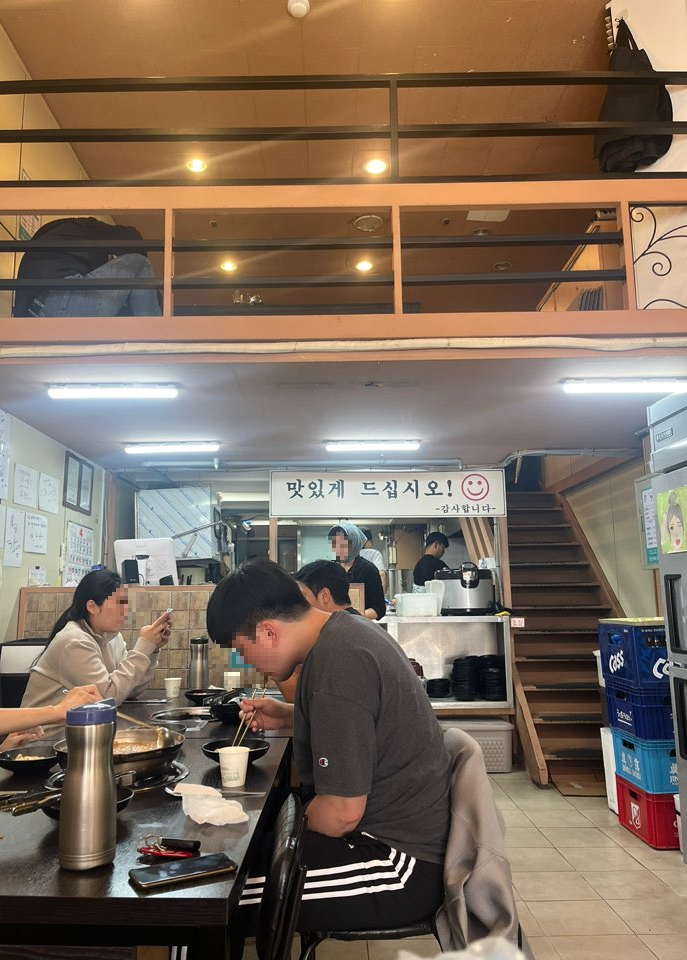 단국대 정문 들어가기 전 홍춘 중화요리 옆에 위치합니다. 식당 내부가 복층 구조로 되어 있어서 2층에 손님들을 꽤 많이 수용할 수 있어 보여요.