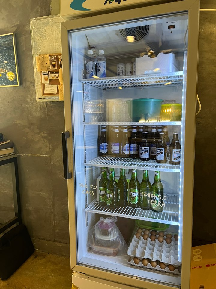 카페 민가는 메뉴가 다양합니다. 커피, 라떼, 티, 스무디, 에이드, 크로플, 푸딩, 빙수, 맥주까지 있어요. 맥주는 테라, 카스, 호가든, 산미구엘이 있네요.(아래 사진 참고)