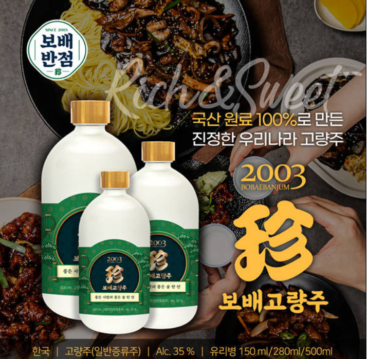 국산 원료를 사용한 지역특산주로 온라인 판매도 가능하며 전국 보배반점 100여개 매장에서 판매 중입니다.