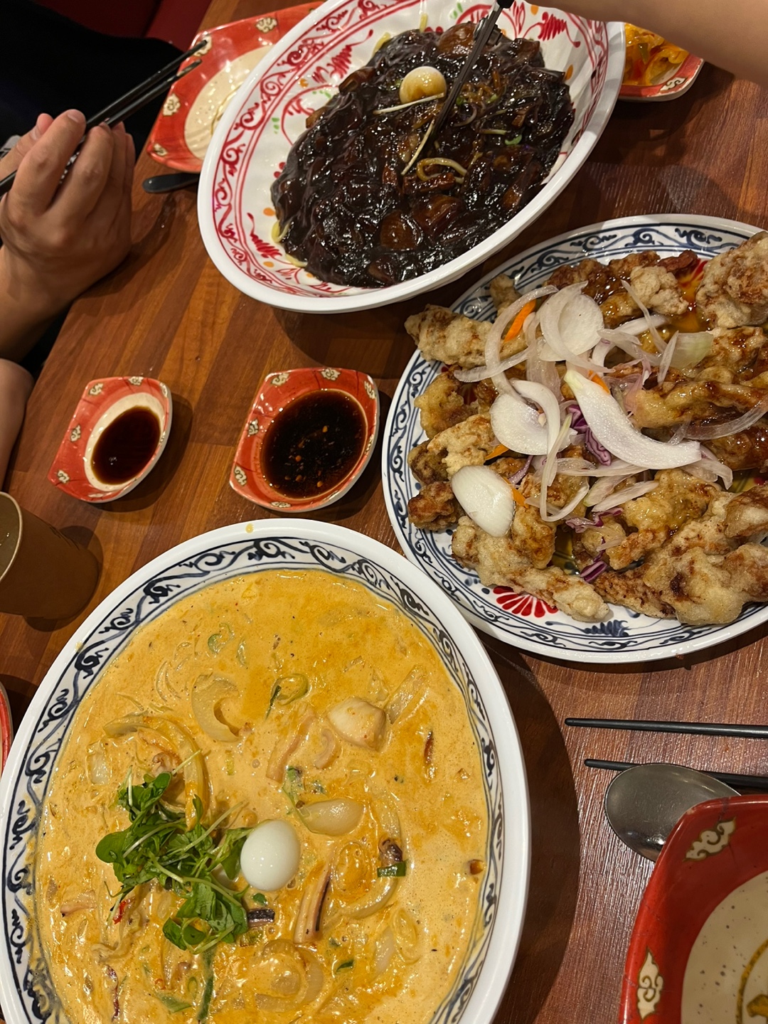 보배반점의 시그니쳐메뉴 크림짬뽕입니다. 짬뽕과 크림파스타가 섞인, 어느 정도 상상되는 맛이죠. 저는 맵린이라서 짬뽕을 잘 못 먹는데요. 가끔 짬뽕이 먹고 싶을 때 있죠? 그럴때 아주 좋은 선택지가 될 메뉴입니다. 크림맛이 진하고 생각보다 칼칼해서 맛있었어요. 다음에 방문해도 또 시킬 것 같습니다.