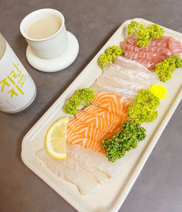 킴스클럽 모둠회를 구매해보았는데요. 광어, 연어, 참치 구성이었어요. 연어가 제일 괜찮았네요. 막걸리와 회의 조합은 잘 모르는 분들이 많은데 꽤나 괜찮은 조합입니다. 회에서 부족한 탄수화물을 막걸리가 채워준달까요? 한 번 시도해 보세요!