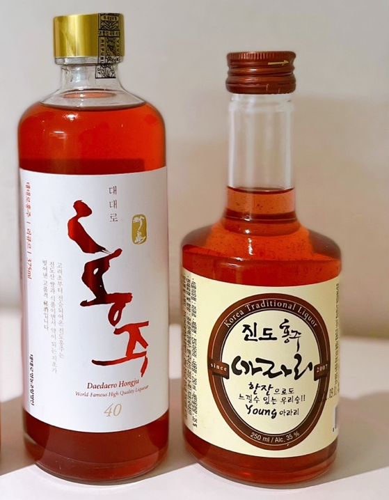 진도 홍주는 고려시대부터 전해내려오는 민속 전통주로서 쌀, 보리, 지초(전남 진도군의 대표 특산물, 약초)로 빚어지는 고품격 명주입니다. 유일하게 진도에서만 빚어지는 술이죠. 고려시대 때부터 빚어졌으나 조선시대에 와서 유명해진 홍주는 임금님께 올리던 진상품 중 으뜸으로 여겨졌고, 사대부 양반가에서도 즐겨 마셨다는 기록이 있습니다.