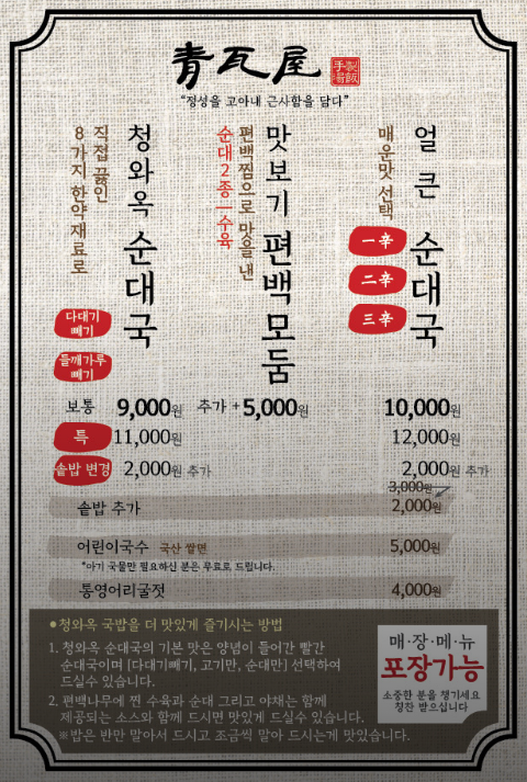 body안녕하세요! 오늘은 :밖에서 한 잔: 포스팅입니다. 순댓국으로 유명한 청와옥 본점에 다녀왔는데요. 사실 저는 순대국도 순대국이지만 이곳에서 판매하는 청와옥 막걸리가 궁금해서 방문해 보았습니다. 자세히 한 번 알아볼까요?
