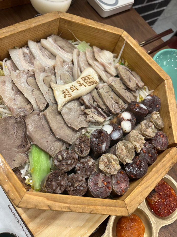 모둠 순대 수육을 주문하시면 얼큰 국밥이 함께 제공되는데요. 건더기가 굉장히 푸짐하게 들어있어서 아주 만족했어요. 수육이 정말 부드럽고 부위도 다양해서 골라먹는 재미가 있었습니다. 순대도 찹쌀 순대와 토종 순대가 적절하게 들어있고 한 입에 먹기 좋은 크기였어요.