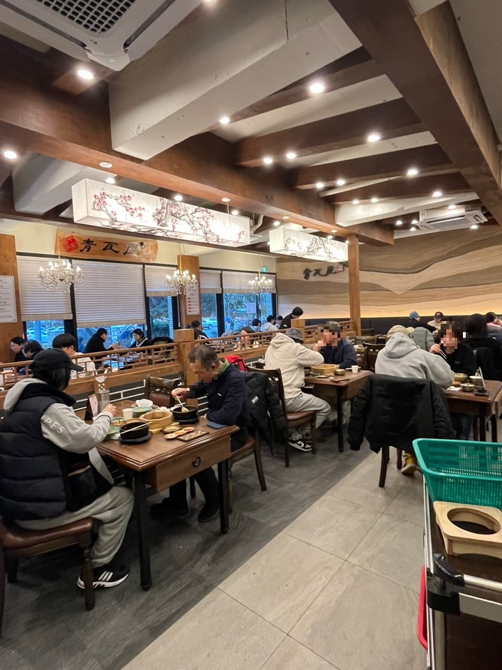양재 시민의 숲 역 3번 출구로 나와서 직진하다 보면 좌측 사진과 같은 청와옥 건물을 만날 수 있습니다. 건물을 끼고 좌회전하면 입구가 있어요. 입구에 대기 예약을 할 수 있는 테이블링 키오스크가 있고 추위를 대비한 대기 장소도 있습니다.