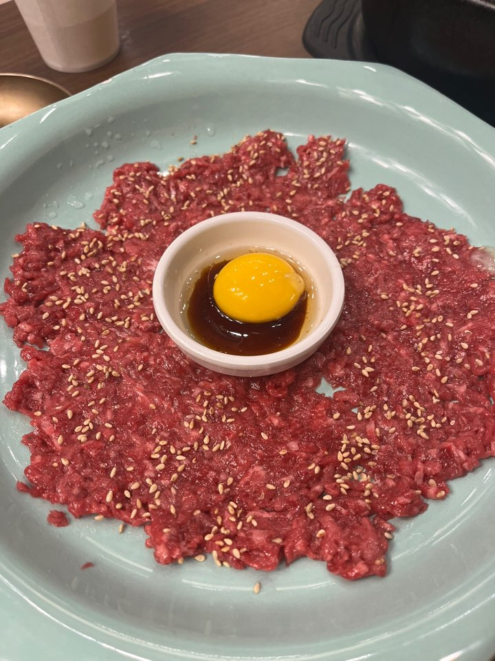 잘게 다져 나온 육회에 제공된 노른자와 간장소스를 부어서 잘 섞으니 간이 딱 맞고 부드러워 먹기 좋았어요. 지난번에 청와옥 본점에서 육사시미를 먹고 실망했었는데 육회는 맛있네요!