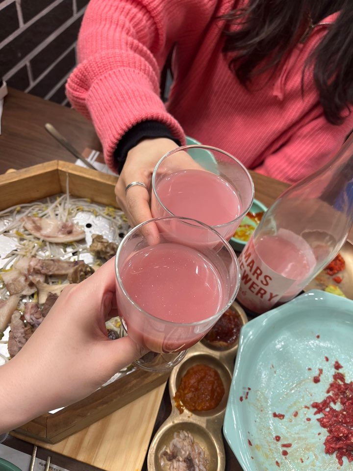 양재 aT센터에서 진행된 우리술 대축제에서 구매한 마스브루어리의 마스 로제 막걸리를 청와옥 음식들과 함께 즐겨보았습니다. 산미가 있고 탄산은 없는 보드라운 막걸리인데요. 이 막걸리는 나중에 한 번 자세히 리뷰해 볼게요!