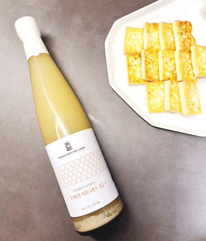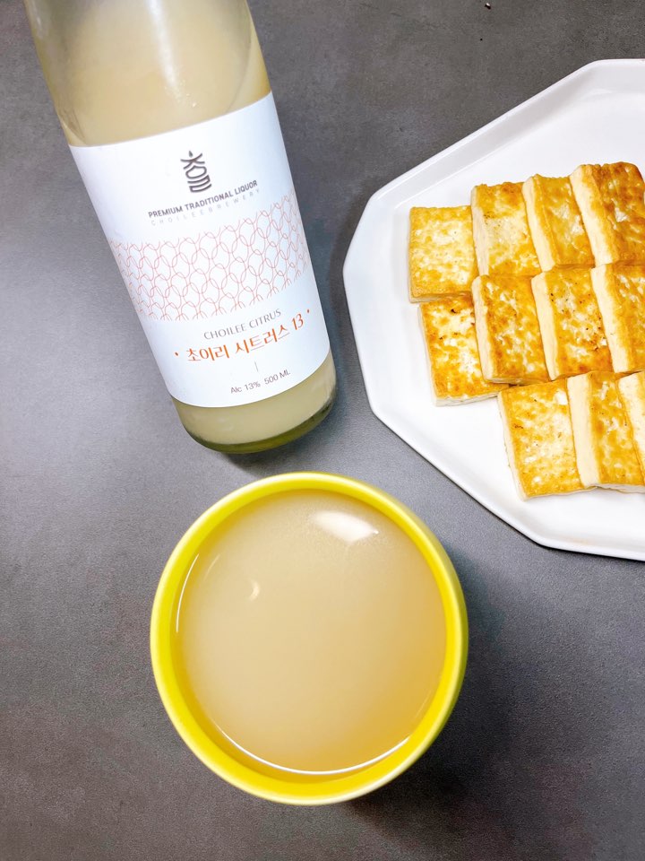 초이리브루어리의 [초이리 시트러스] 유자 감귤 막걸리 [두부 구이] 페어링