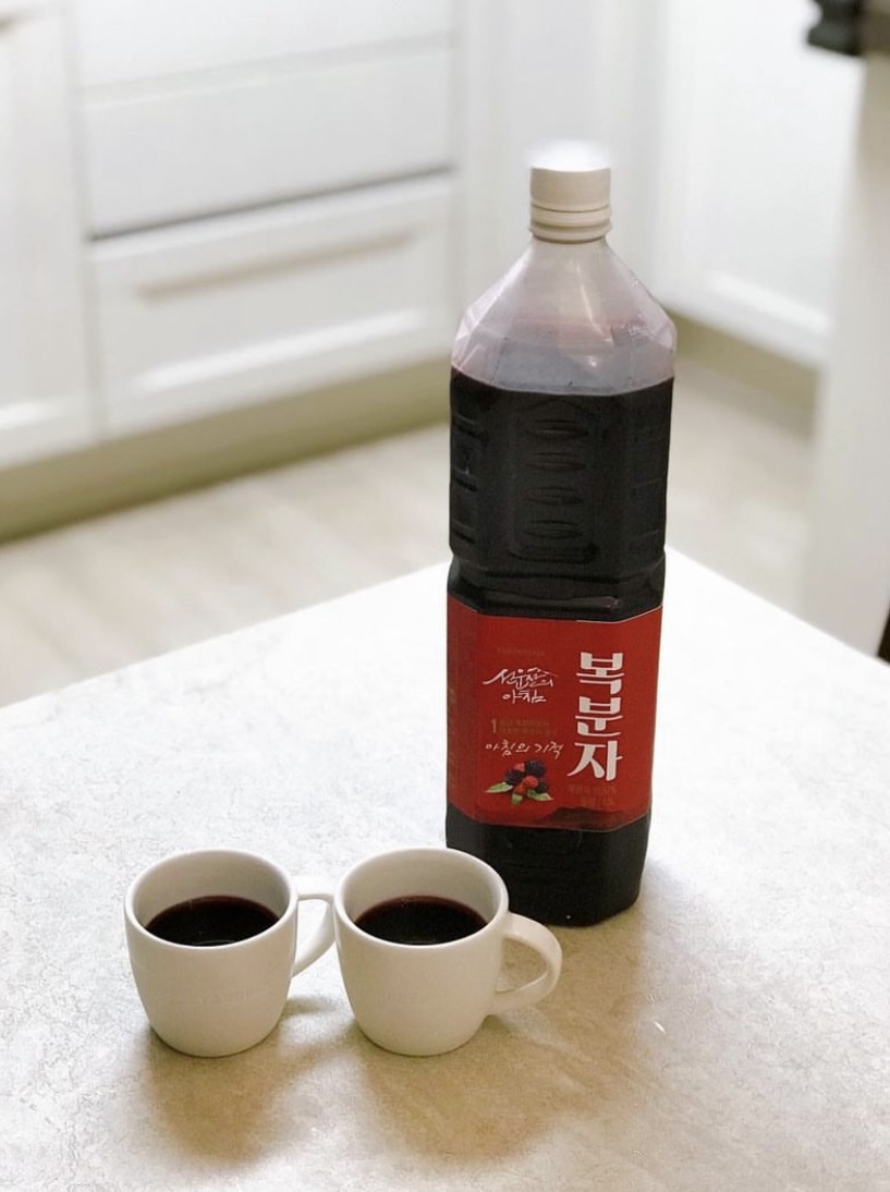 페트병에 담긴 복분자주입니다.