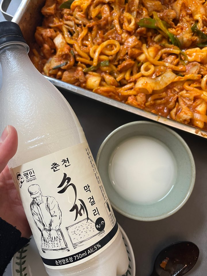 춘천에서 포장해 온 1.5 닭갈비와 함께 마셨어요. 매콤한 닭갈비와 벌컥 막걸리는 두말하면 입 아픈 페어링이긴 하지요. 그런데 제 입에 잘 맞지 않아서 한 잔만 마시고 닭갈비어라는 맥주로 갈아탔답니다. 요즘 프리미엄 막걸리를 많이 마셔서인지 아쉬움이 많은 술이었네요.