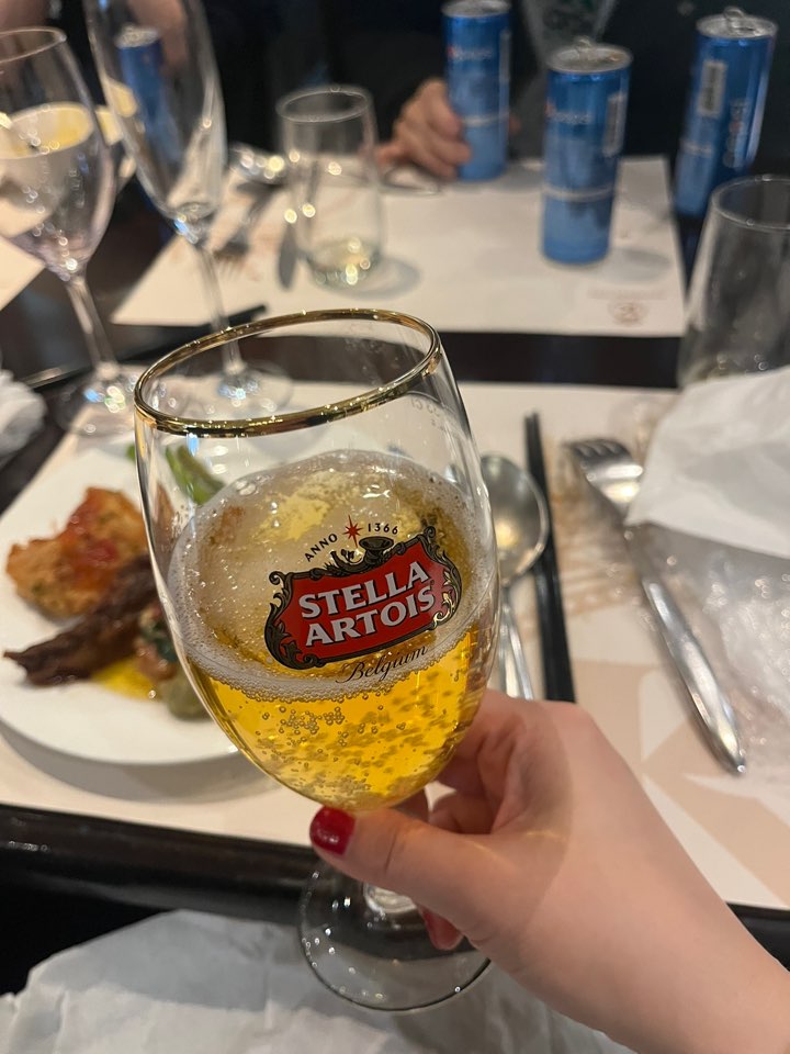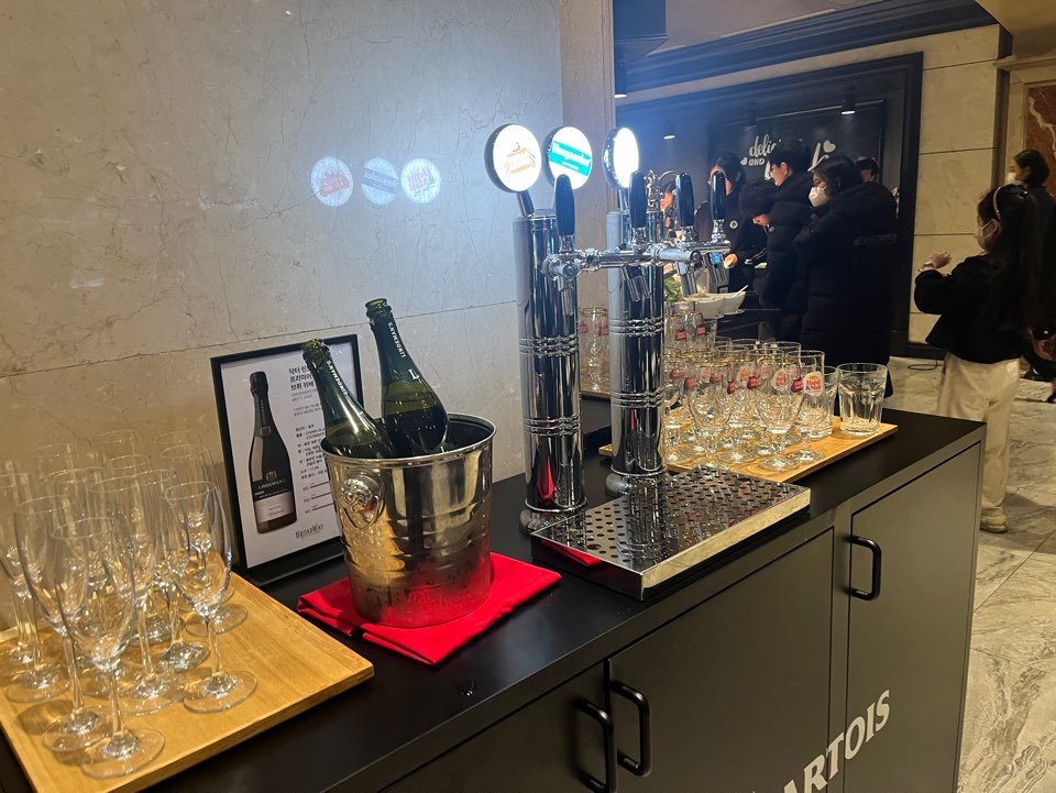 브로드웨이 뷔페의 매력은 생맥주와 와인 무제한이라는 점인데요. 생맥주 3종(스텔라, 호가든, 핸드앤몰트)과 샴페인 그리고 레드 와인 2종, 화이트 와인 2종이 모두 무제한이랍니다.