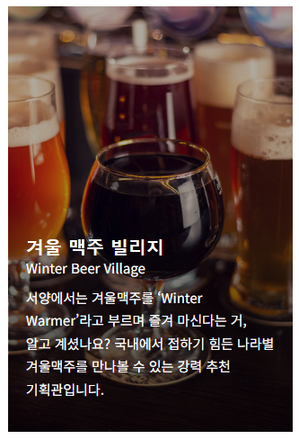 '겨울 맥주 빌리지'와 '주류 라운지' 특별 전시관이 따로 마련되어 있다고 하니 여기는 꼭 들러야겠습니다.