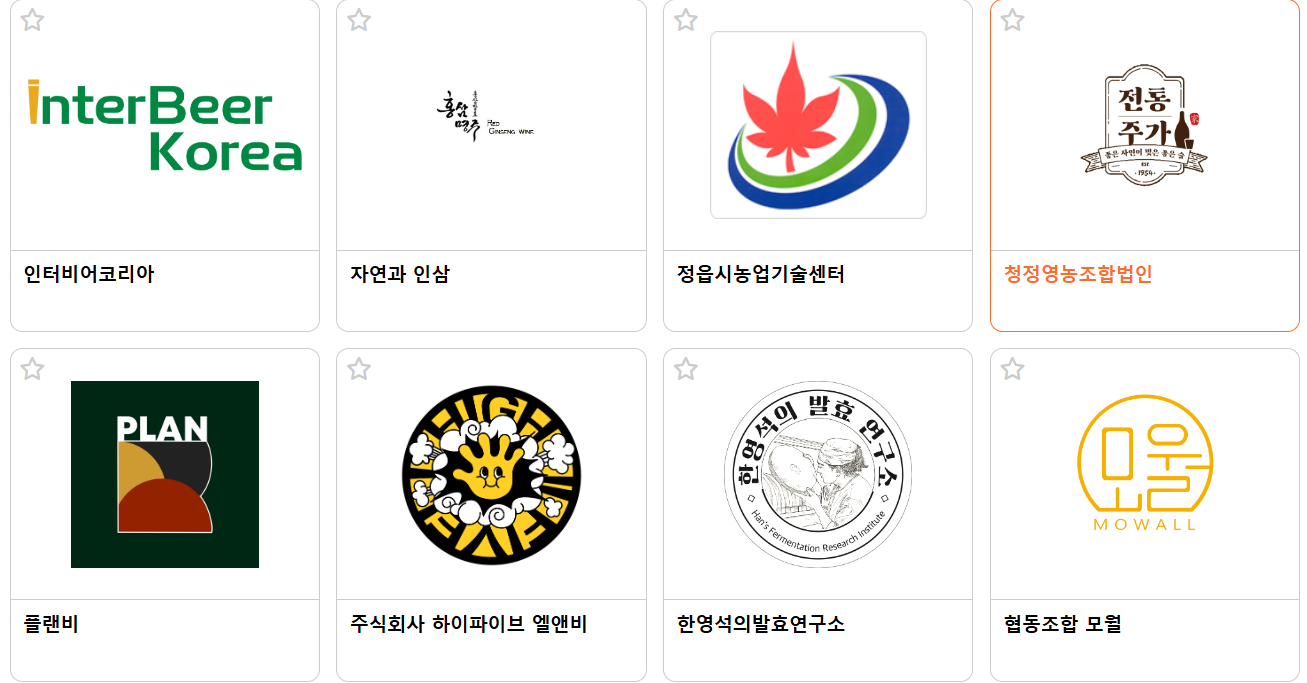 제가 관심있는 분야는 전통주인데요. 복숭아 탁주가 정말 맛있는 백경증류소, 고급스러운 산미가 매력적인 양양술곳간, 전통주계의 근본 풍정사계, 산소막걸리로 유명한 청산녹수, 포항의 동해명주 등 전통주 양조장에서도 많이 참가하셔서 반갑습니다.