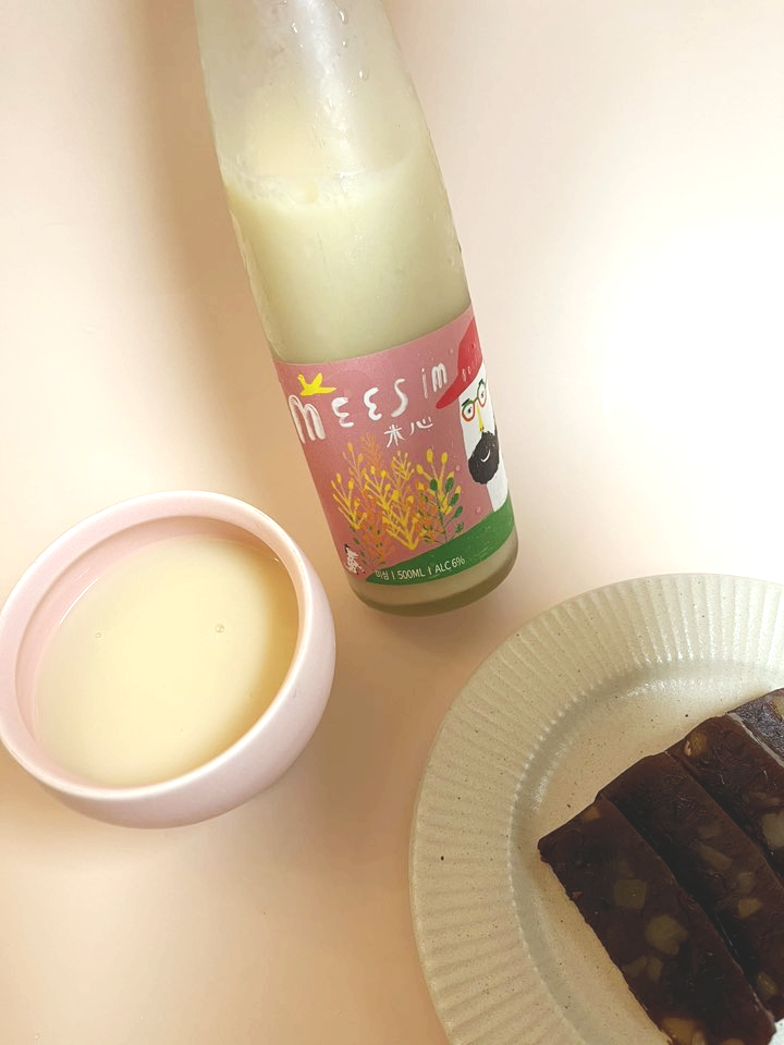 파라다이스시티 호텔에서 만든 미심 막걸리는 일반적인 6도 막걸리에 비해 질감이 묵직하고 쫀득합니다. 색감도 아이보리에 브라운을 한 방울 떨어트린듯한 색감이고 얼그레이 향이 은은하게 나요.