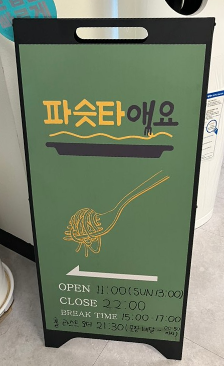 파슷타애요 용인죽전점은 당일 들어오는 신선한 재료로 청결하고 깔끔한 오픈 키친에서 정성스럽게 조리하는 파스타 맛집입니다. 주말에 방문했는데 웨이팅이 있었어요. 4인 테이블 4개, 2인 테이블 한 개가 있는 아담한 식당이며 예약, 주차, 배달 모두 가능합니다.
