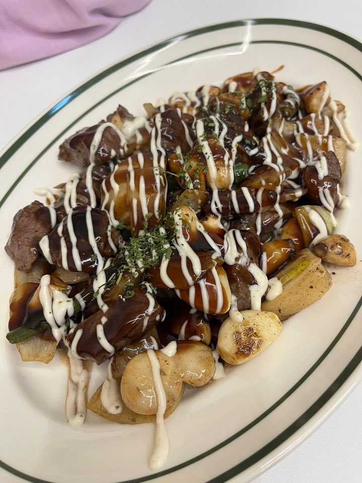 찹스테이크와 매콤 크림 파스타 세트 메뉴입니다. 음료 1가지가 함께 제공되는 세트 메뉴이고요. 파스타와 음료 종류는 선택이 가능해요. 또한 매콤 크림 파스타의 경우 맵기 조절이 가능해서 좋았어요. 찹스테이크 소스가 달짝지근하니 맛있었고 그 안에 들은 버섯이 특히 맛있었어요. 파스타 양이 아주 넉넉하고 재료도 풍성하게 들어있어요.