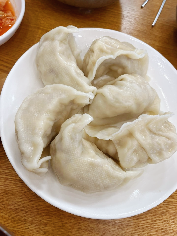 접시만두(15,000원)는 큼직한 만두 여섯개가 나오는 구성이네요. 굉장히 커요. 간이 세지 않은 고기와 숙주가 듬뿍 들어간 담백한 맛이었습니다.