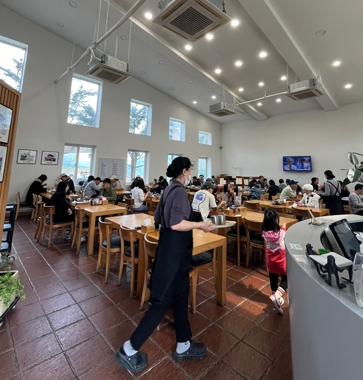 층고가 굉장히 높은 단일층입니다. 생각보다 작은 규모인데 회전율이 빨라서 대기시간은 길지 않을 것 같네요. 저희는 점심 시간이 살짝 지나서 방문해서 여유로운 분위기였습니다. 화장실도 내부에 있는데 깔끔했어요.
