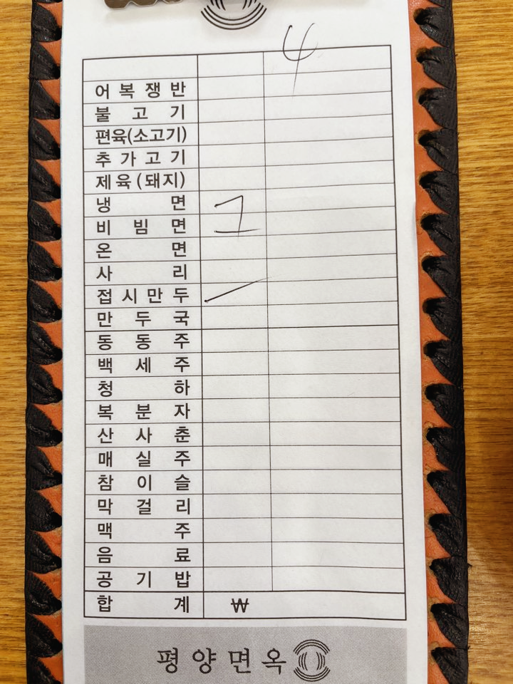 주류가 다양해서 좋은데요. 동동주, 백세주, 청하, 복분자, 산사춘, 매실주, 참이슬, 막걸리(지평), 맥주가 있었어요. 옆 테이블에 앉은 어르신 분들께서 냉면에 소주를 드시고 계셨는데 정말 맛있어 보이더라고요. 다음에 방문해서는 꼭 평양냉면에 소주 한 잔 해보겠습니다.