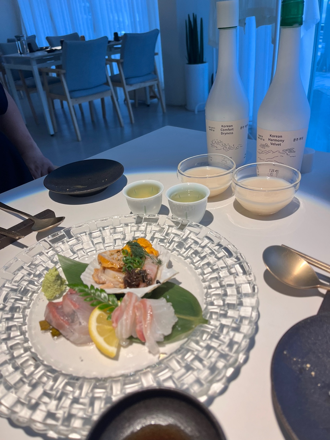 회가 나올때쯤 매니져님께서 산미가 있는 맑은 술이라 회와 함께 마시면 좋은 페어링일 것이라면서 송이주 두 잔을 서비스로 주셨어요!