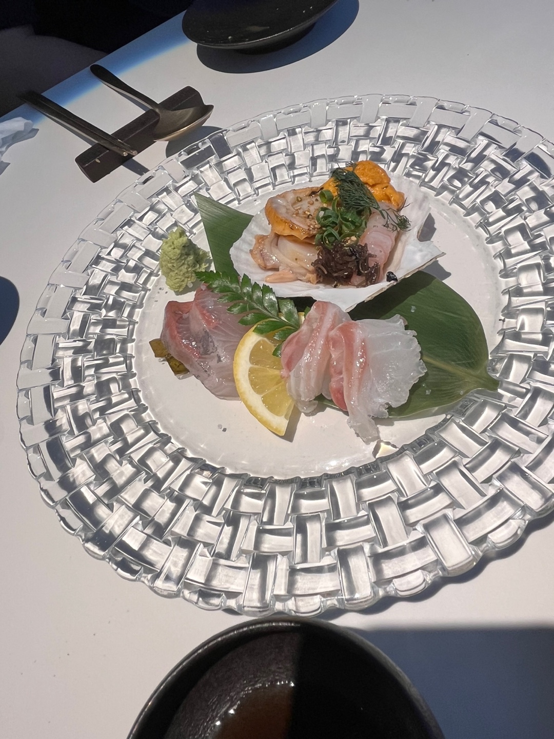 조개껍질 위에 제공되는 새우, 우니, 조개는 삼합처럼 숟가락 위에 얹어 즐기라고 하시기에 추천해주시는대로 즐겨보았습니다.