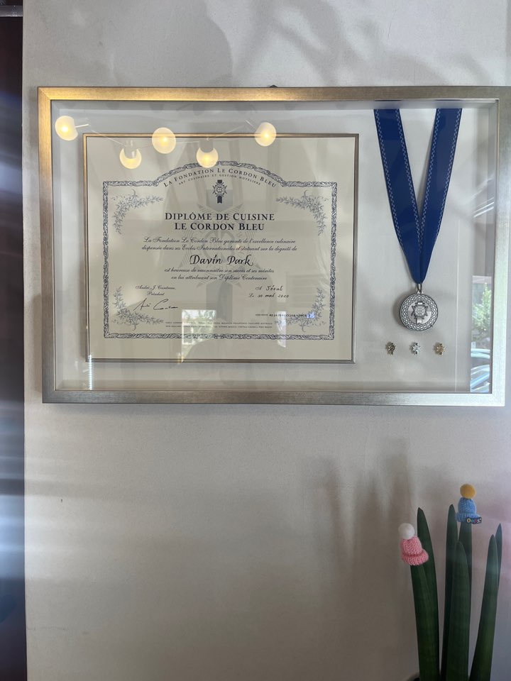 주문하는 곳에 걸려있던 셰프님 경력 증명서들. 르꼬르동블루 출신이십니다. 멋지네요!
