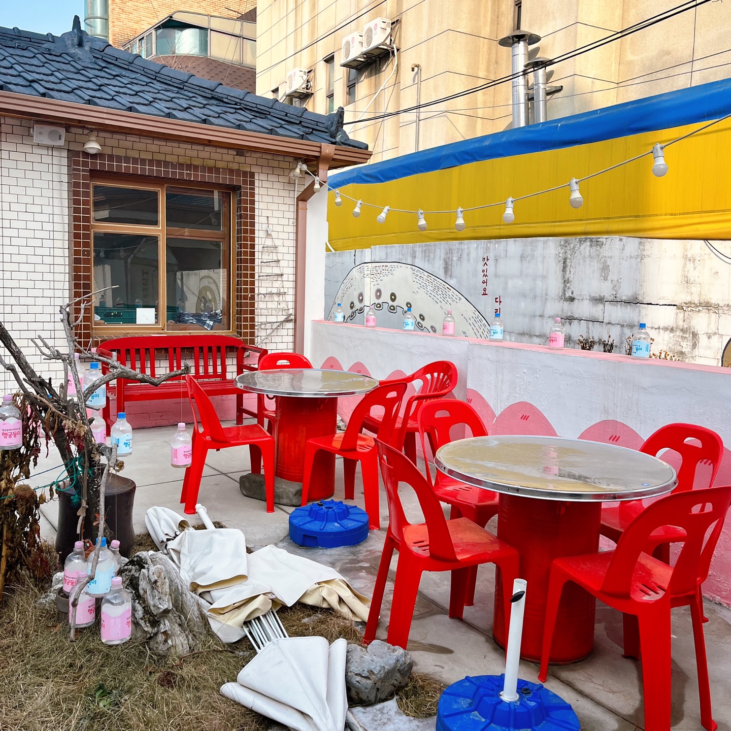 작은 마당에는 포장마차 테이블이 몇개 있네요.