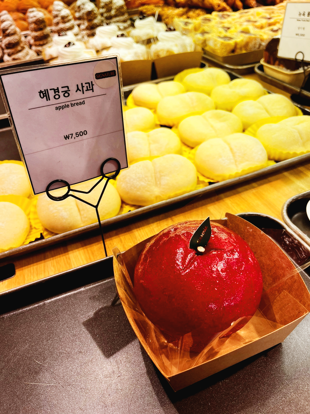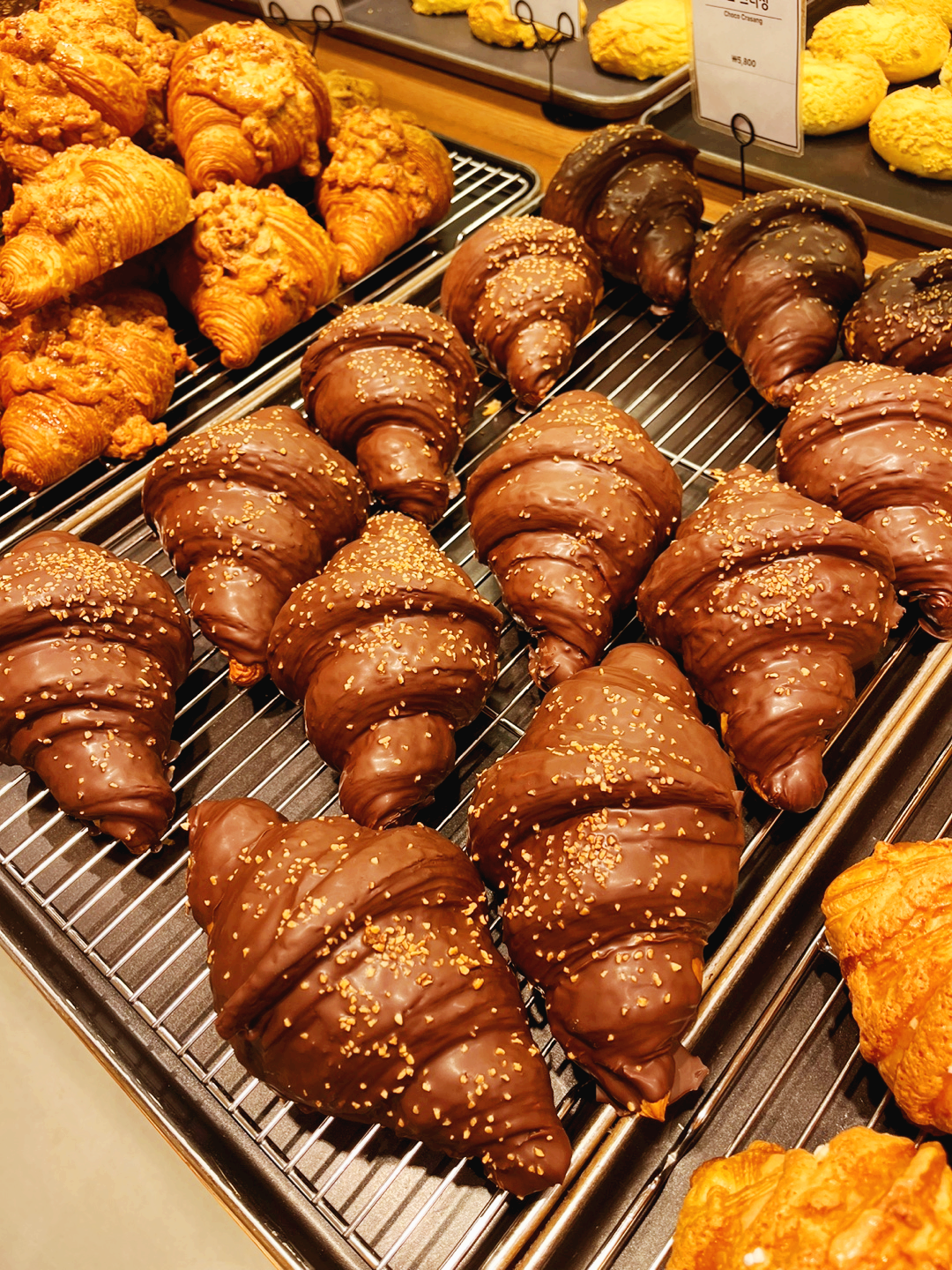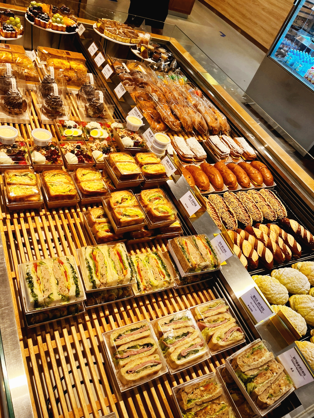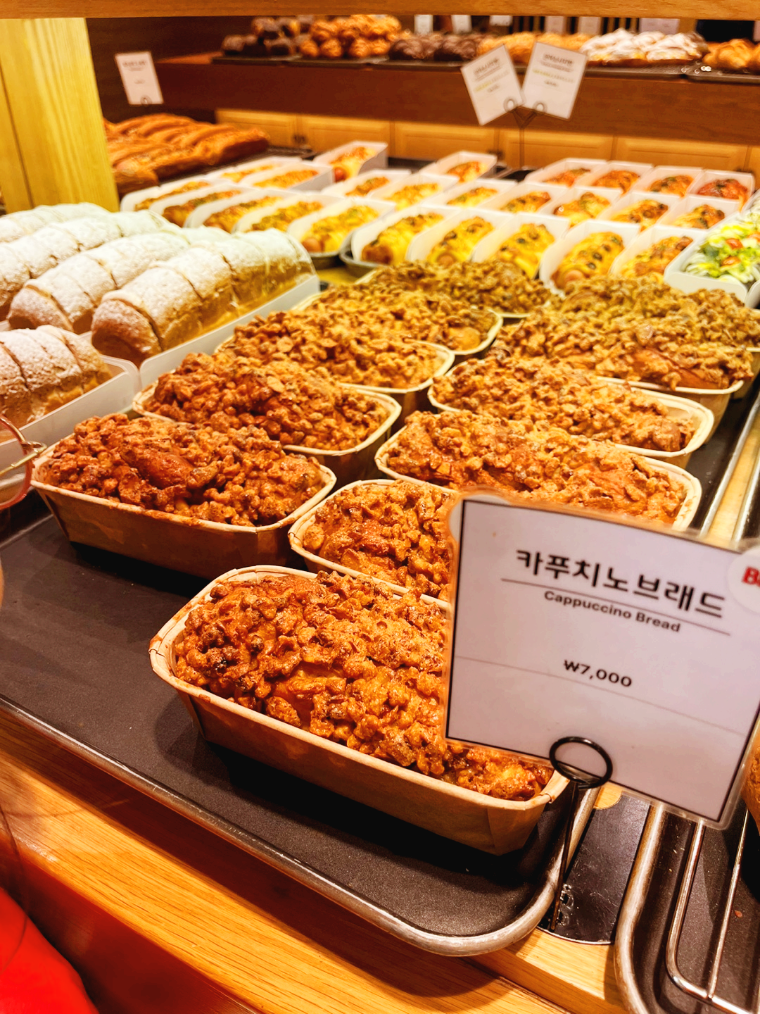 종류가 엄청 많아서 사진으로 다 담지 못했어요. 먹어보고 싶은 빵들이 정말 많네요. 그런데 전반적으로 가격대가 비싼 편이라 쉽게 손이 가지 않았습니다.
