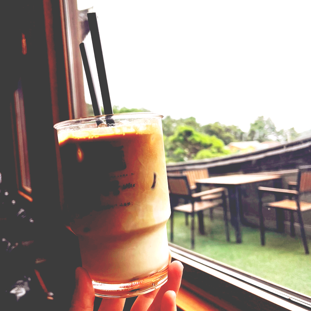 2층에서 바깥으로 나가는 문을 통해 나가니 이렇게 야외 테이블이 있더라고요. 사진의 반대편에도 테이블이 있었어요. 지금은 너무 더워서 이용하는 사람이 없었지만, 선선한 가을날에는 이런 야외 테이블에서 커피 마시기 좋겠네요.