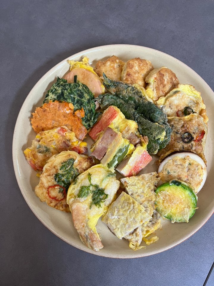 모듬전이랑 상큼한 호랑이 유자 생막걸리 조합이 아주 훌륭하네요. 모듬전은 마포 공덕역 공덕시장에 있는 마포 청학동 부침개라는 곳에서 구매했어요. 먹고 싶은 전을 직접 바구니에 담으면 무게를 재서 가격을 측정해요. 사진에 보이는 전에다가 육전 1장까지 더해서 25,000원 정도였는데요. 세어보니 총 12가지네요. 너무 괜찮죠? 청학도 부침개 장소 리뷰도 조만간 해볼게요!