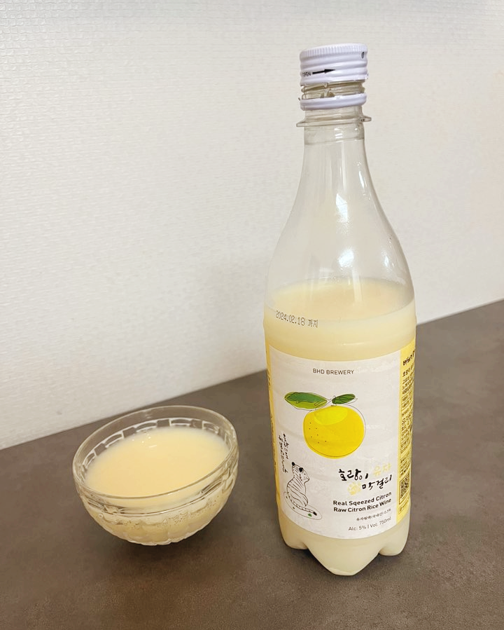치자를 넣어서 노란 빛깔을 내었으며 유자 향이 은근히 많이 납니다. 상큼한 유자향이 기분을 업 시켜주네요. 유자가 상큼하면서도 씁쓸한 맛이 있기 때문에 예전에 마셨던 어떤 유자막걸리는 쓴 맛이 강했었는데 배혜정도가의 호랑이 유자 생막걸리는 유자의 상큼한 맛만 잘 살려낸 것 같아요. 쓴 맛이 전혀 없고 새콤합니다. 산미가 밸런스를 딱 잡아줘서 무작정 달기만 하지는 않은 깔끔한 막걸리네요. 청량감도 있어 호불호 없이 대중적으로 좋아할 맛이에요. 역시 대기업.