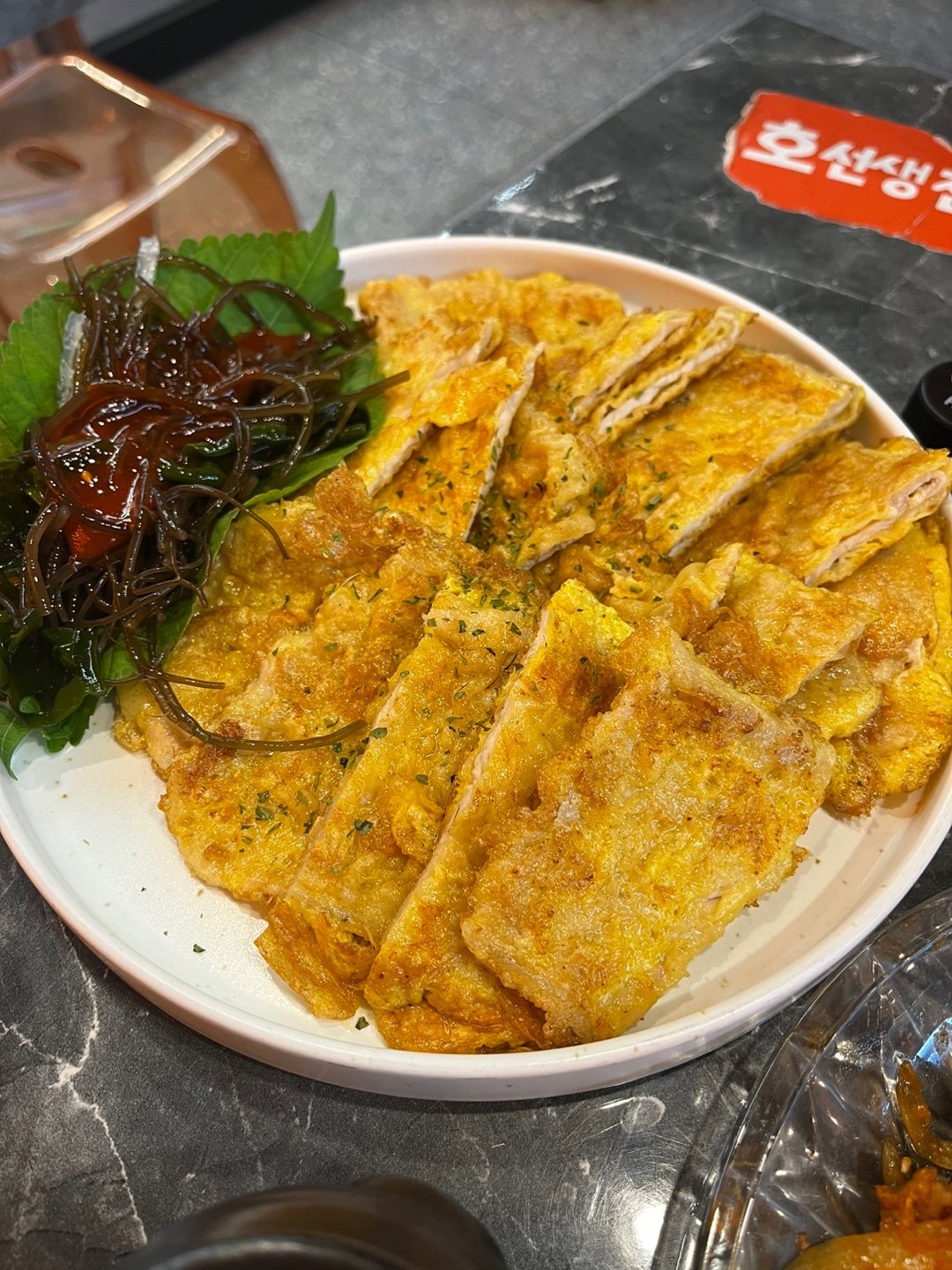 육전은 주문하자마자 정말 빨리 나왔는데 뜨끈뜨끈하고 계란물이 아주 고소했습니다.
