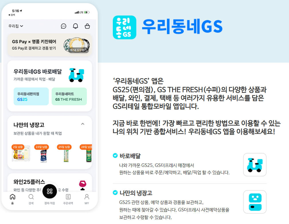 우리동네GS는 GS25 편의점 서비스를 담은 앱인데요