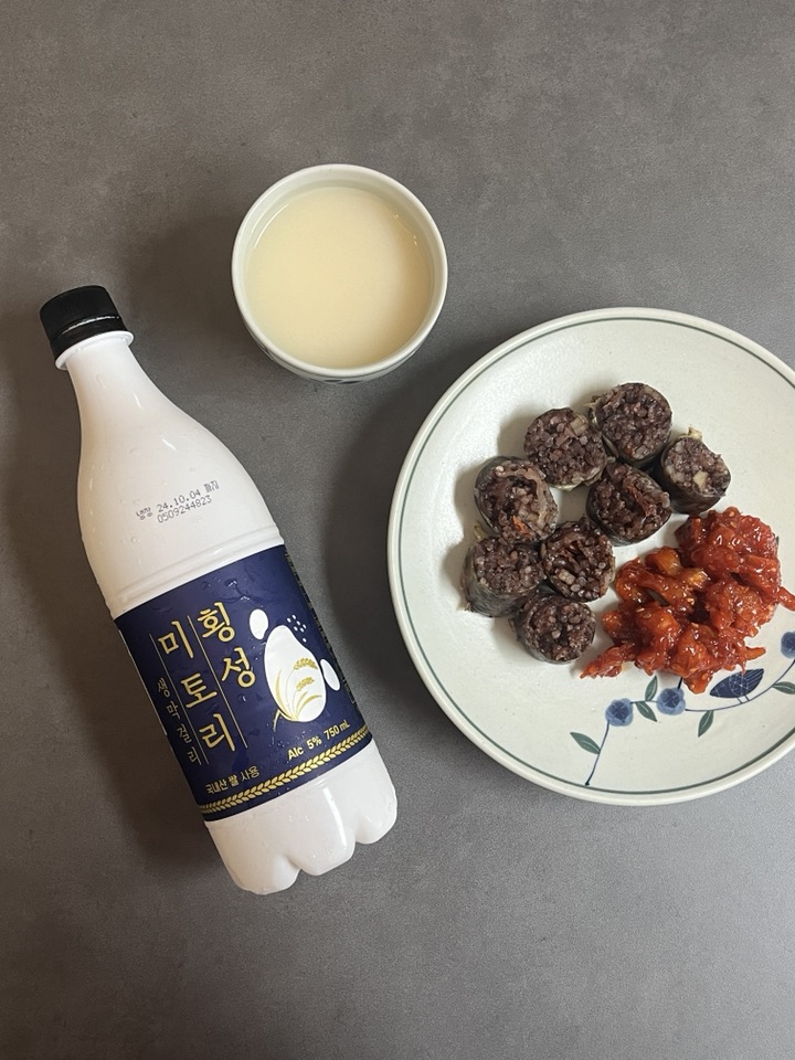 오랜만에 집에서 한잔 포스팅이네요. 강원도 지역 막걸리 중에 하나인 횡성 미토리 생막걸리와 55년 전통 해늘순대의 야채찹쌀순대를 페어링 해 보았어요!
