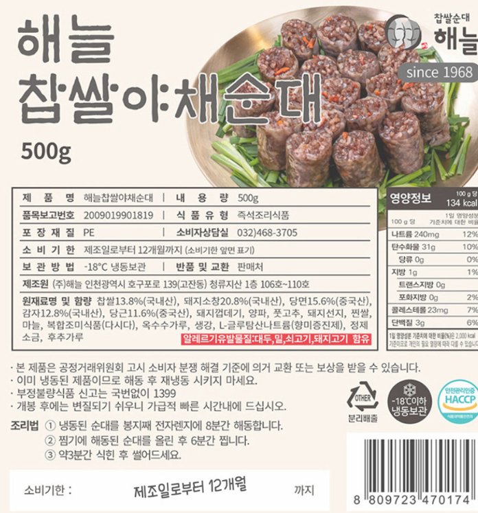 저는 막걸리 안주로 순대를 참 좋아하는데요. 해늘순대의 야채찹쌀순대가 집에서 쪄먹어도 맛이 좋아서 가끔 사놓게 되네요.