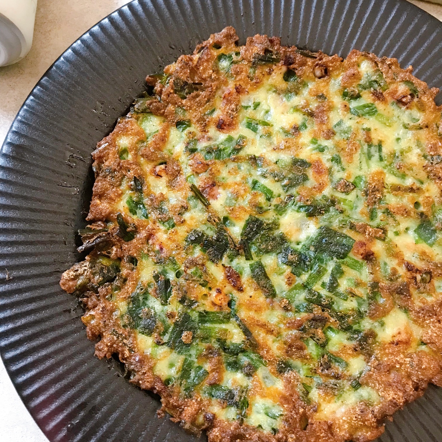 - 프라이팬에 기름을 넉넉히 두르고 부추전을 얇게 구워줍니다.