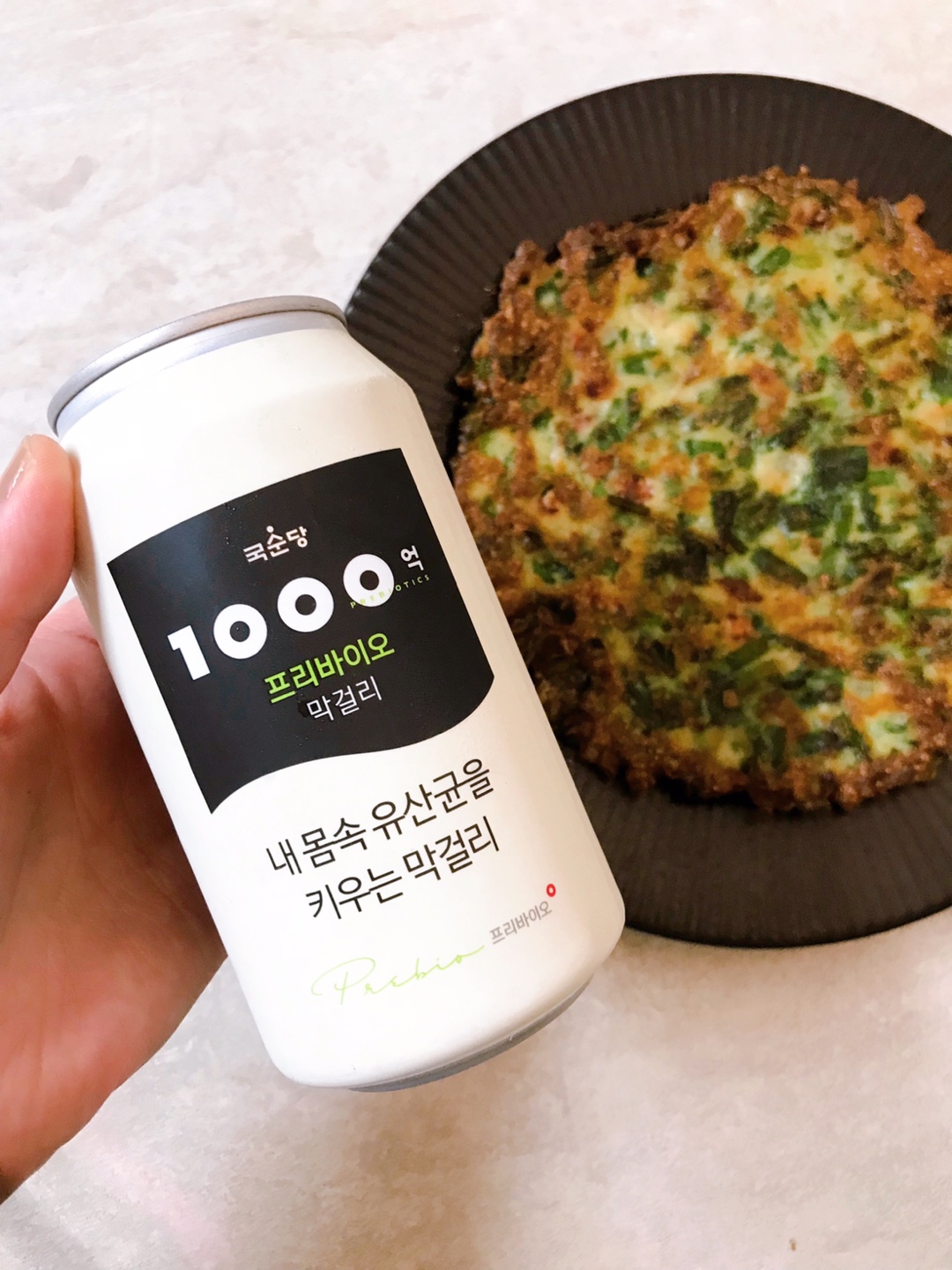 국순당 [1000억 프리바이오] 캔 막걸리와 [수육], [부추전]을 먹어보았습니다.